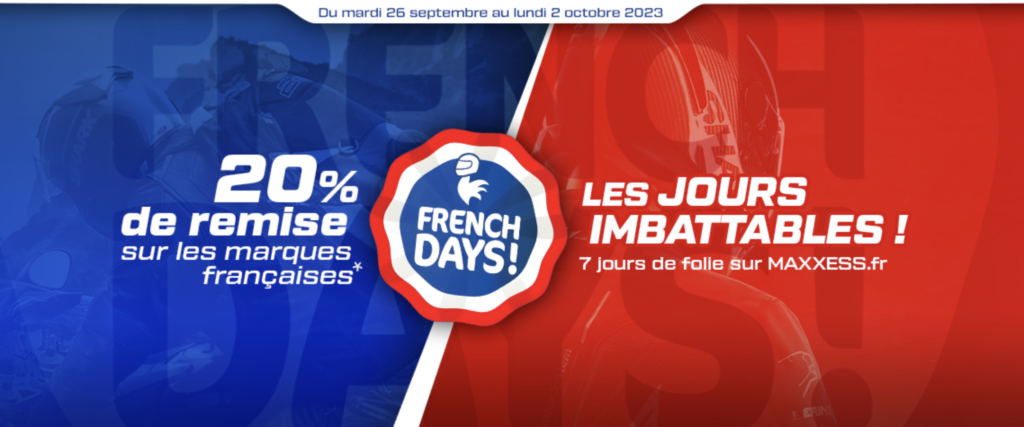 Les FRENCH DAYS MAXXESS sont l’occasion parfaite de montrer votre soutien à l’innovation française en matière de motocyclisme. Profitez de cette offre exceptionnelle et équipez-vous comme jamais auparavant, que vous soyez un motard chevronné ou que vous débutiez tout juste dans le monde de la moto.