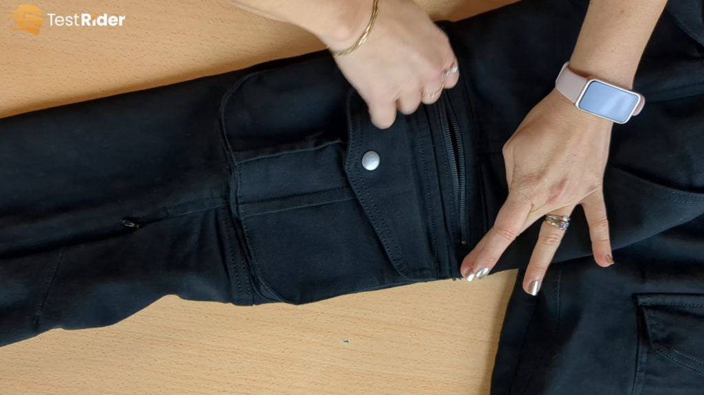 Le Be Ranger Lady est également conçu pour le quotidien des motardes, avec plusieurs poches bien placées : deux à l’avant, deux à l’arrière, et deux latérales, dont une zippée et une à bouton pression. Cette configuration permet de garder ses affaires à portée de main. Malgré son épaisseur due à une doublure en fibre d’aramide, il reste étonnamment léger, même par temps chaud. Toutefois, il ne s’agit pas d’un pantalon spécifiquement conçu pour l’été, car il ne possède pas de ventilation intégrée.