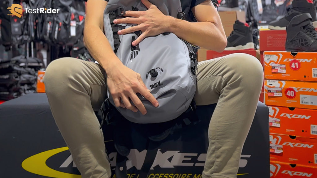 L’un des points forts de ce sac réside dans sa polyvalence. Il peut être utilisé comme sac à dos classique ou comme sac de selle, ce qui en fait un allié parfait pour les roadtrips. De plus, sa partie amovible offre une personnalisation appréciable. Par exemple, Maxime explique comment il a pu ajuster le sac en fonction de son airbag pour plus de confort. Cette adaptabilité le rend pratique pour une utilisation quotidienne ou lors de longs trajets.