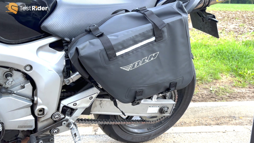L’installation des sacoches BLH est intuitive grâce à un système de sangles ajustables par velcro. Selon votre moto, vous pouvez les placer soit au-dessus, soit en dessous de la selle. Pour un ajustement parfait, des réglettes sont incluses afin d’adapter les sacoches à la forme du cadre. Le tout se fixe facilement et en toute sécurité avec des sangles supplémentaires pour assurer une stabilité maximale pendant vos trajets.