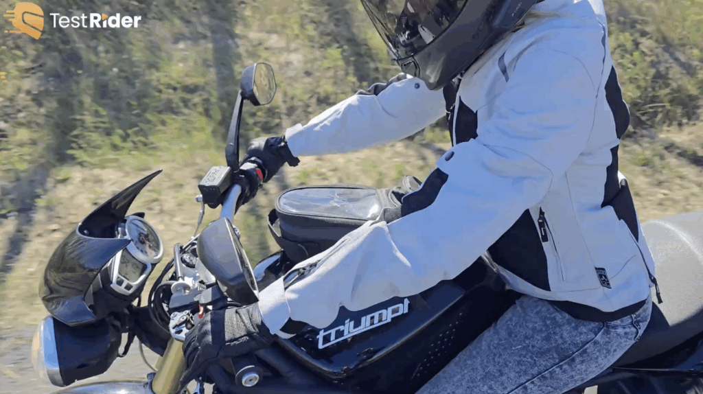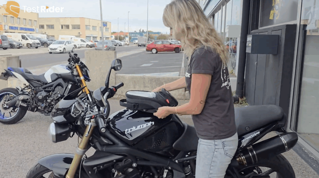 Dans l’ensemble, la sacoche GIVI Easy-T est jugée très fonctionnelle et simple d’utilisation par notre testeuse. Virginie a particulièrement apprécié sa faible hauteur. C’est un point positif pour les motards moins grands, car elle ne vient pas gêner le champ de vision ou les mouvements sur la moto.