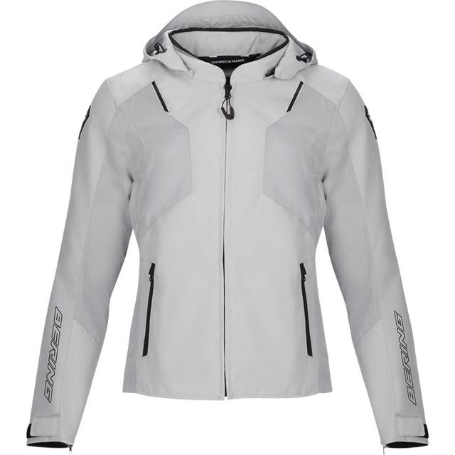 Blouson moto estival conçu pour allier confort, style et praticité. Conçu en Hard Mesh et Fibretech 600D issus de fibres polyester 100% recyclées, légèreté, durabilité et ventilation efficace via panneaux mesh stylisés. Multiples rangements, avec 2 poches externes, 2 poches intérieures et une poche portefeuille étanche, zip de connexion blouson/pantalon. Capuche amovible et serrages aux poignets et aux hanches, ajustement précis et look contemporain. Protections coudes et épaules CE ALPHA amovibles EN1621-1 Niveau 1 et poche pour protection dorsale (en option). Homologué CE EN 1621-1: 2013 Classe AA.