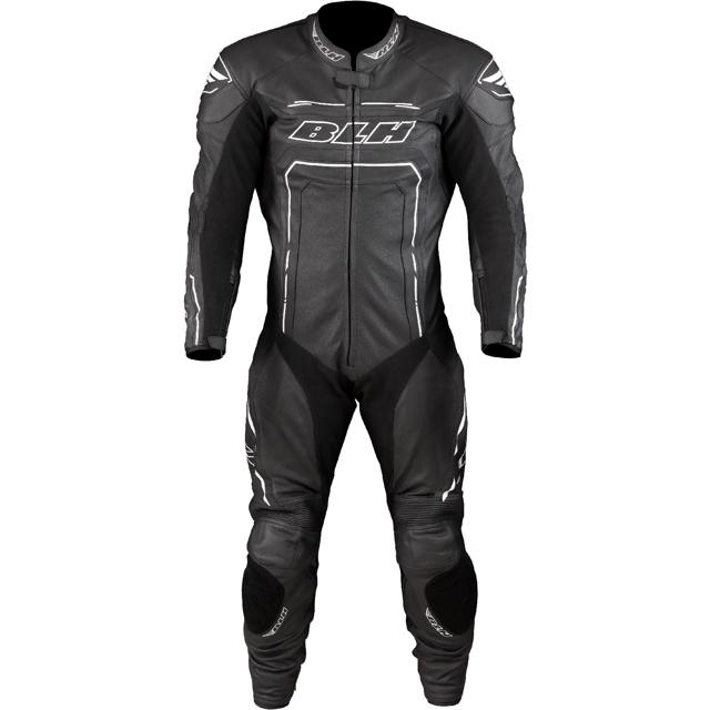 Combinaison en cuir de vachette. Empiècements en tissu stretch sous les bras et à l'entrejambe. Smock d'aisance dans le dos. Homologation CE. Protections CE aux genoux, hanches, coudes et épaules. Bosse dorsale aérodynamique. Coques externes sur les épaules. Empiècements velcro prévus pour recevoir des sliders.