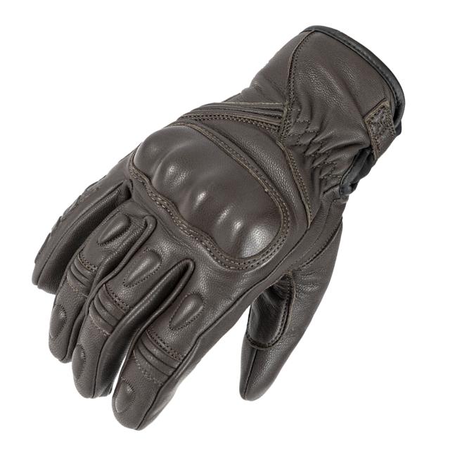 Gants en cuir de chèvre au look néo rétro. Insert spécifique permettant d'utiliser aisément les écrans tactiles. Doublure en coton. Homologation CE selon la norme EN 13594:2015. Coque de protection. Paume renforcée en cuir de chèvre. Renforts en mousse sur les doigts. Fermeture velcro.