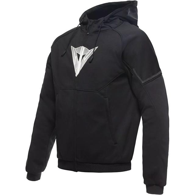 Sweat en tissu polaire en polyester. Capuche fixe. 1 poche extérieure et 2 extérieures. Support pour oreillette Bluetooth. Poignets et taille élastique. Compatible avec les dorsales G1 et G2. Empiècements réfléchissants sur le lien pour attacher la capuche. Protections Pro-Shape 2.0® homologuées CE aux épaules et aux coudes. Homologation CE.