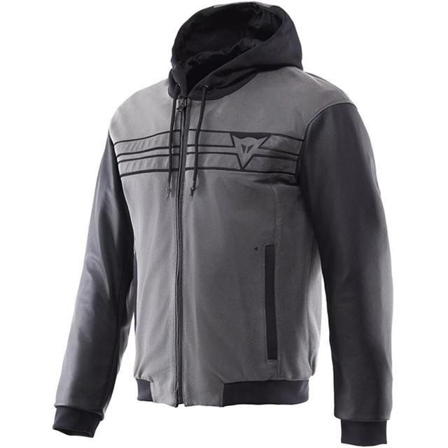 Blouson moto Dainese type bomber, style urbain affirmé. Conçu en cuir de vache Soave souple avec manches en cuir Federica, confort, résistance et durabilité. Capuche fixe en cuir et textile, touche moderne et originale, idéale pour un usage quotidien en ville. Protections Pro-Armor amovibles aux épaules et aux coudes homologuées EN 1621.1 niveau 1, et poches pour protection dorsale G1/G2 et protection thoracique (en option). Deux poches extérieures et poche intérieure imperméable. Système de connexion blouson-pantalon. Homologué EN 17092 classe A.