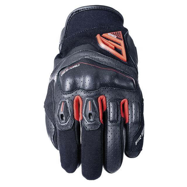 Gants été. Dos en cuir de chèvre pleine fleur et paume en cuir synthétique avec renfort en cuir de chèvre. Manchette courte en Néoprène™. Fourchettes en Nylon extensible. Coque de protection métacarpo-phalangienne monobloc ERGO PROTECH® PVC sous cuir. Mini-coques de protection en TPR souple sur index et majeur. Logo FIVE de protection en TPR au niveau des métacarpes. Slider de paume en TPR. Renforts de protection en mousse éponge de 3mm sous cuir sur annulaire et auriculaire. Soufflets d'aisance accordéon en cuir sur le pouce. Index tactile Touch Screen™. Homologation CE EN13594 Niveau 1KP.