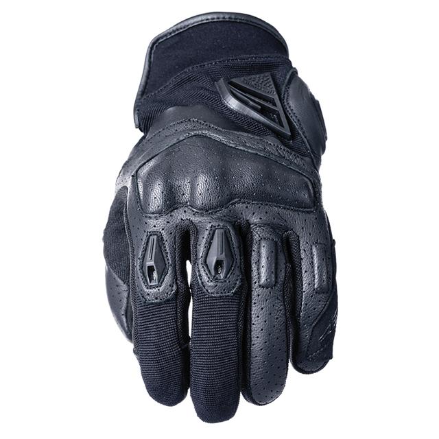 Gants été. Dos en cuir de chèvre pleine fleur et paume en cuir synthétique avec renfort en cuir de chèvre. Manchette courte en Néoprène™. Fourchettes en Nylon extensible. Coque de protection métacarpo-phalangienne monobloc ERGO PROTECH® PVC sous cuir. Mini-coques de protection en TPR souple sur index et majeur. Logo FIVE de protection en TPR au niveau des métacarpes. Slider de paume en TPR. Renforts de protection en mousse éponge de 3mm sous cuir sur annulaire et auriculaire. Soufflets d'aisance accordéon en cuir sur le pouce. Index tactile Touch Screen™. Homologation CE EN13594 Niveau 1KP.