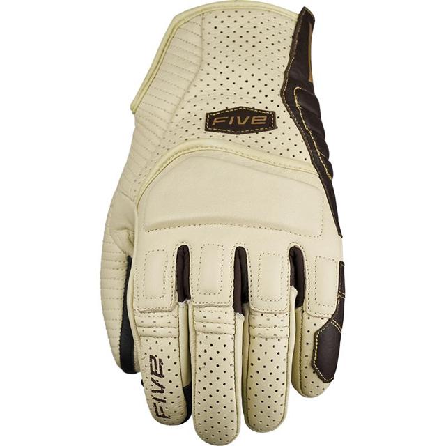 Gants été. Structure supérieure en Syntech Skin™. Paume en cuir de chèvre pleine fleur souple. Empiècement tissu Mesh ventilé au-dessus du poignet. Construction des doigts par coutures extérieures. Contour des doigts en cuir de chèvre. Fond de fourchettes (entre-doigts) en nylon Powernet. Structure du pouce en Softshell pour une finesse et un confort optimum. Renfort en Syntech Skin™ au petit doigt. Renforts de l'hypothénar en mousse caoutchouc 2mm. Protection métacarpo-phalangienne AirgoProtech™ ventilée. Coque de protection (slider de paume) de l'hypothénar Ergoprotech® en TPR souple. Protections de doigts en TPR avec prise d'air. Protection de l'avant-bras grâce à un renfort en mousse 5mm sous Syntech. Skin™. Système de fermeture par patte TPR + Velcro® avec soufflet de confort Mesh et languette d'enfilage. Lien anti-torsion accordéon entre l'auriculaire et l'annulaire visant à limiter le risque d'écartèlement en cas de chute (innovation FIVE). Renfort palmaire en Hi-Res Grip™ pour une adhérence optimale aux poignées. Système TouchScreen™ sur index pour manipuler les écrans tactiles. Homologués CE KP1.