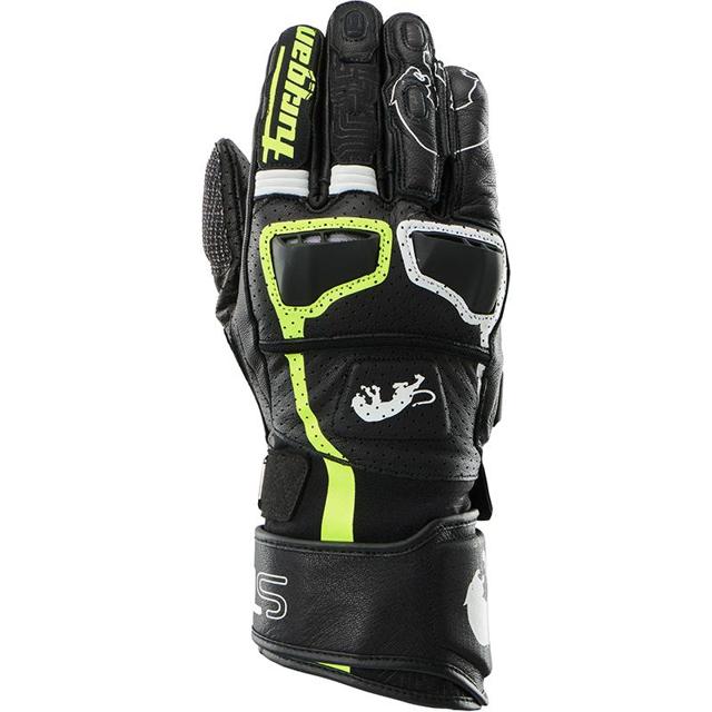 Gants moto racing. Cuir de chèvre alliant souplesse et résistance, le cuir de chèvre permet une protection de premier ordre. Paumes 100% cuir. Renforts sur les paumes et les doigts. Coque de protection pour les métacarpes. Sliders paumes. Lien anti-retournement. Renforts ripstop KevlarR. Gainés par un entrelacs de fils incorporants du Kevlar®. Manchette double serrage. Coutures retournées sur les doigts pour éliminer toute gêne potentielle. Préformés. Stretch sur les doigts. Insert grip. Système de ventilation AFS, crée et canalise un flux d’air dans un vêtement, ou un gant, afin d’apporter une ventilation performante en cas de hausse des températures. Perforations et ventilations placées afin d’optimiser la circulation d’air dans le gant, sans nuire à la sécurité. Homologués CE EPI niveau 1KP.