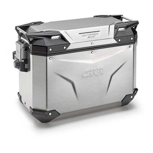 La valise latérale Trekker Outback EVO 48 en aluminium naturel, équipée du système d'accrochage MONOKEY® CAM-SIDE, offre une étanchéité maximale pour les aventures à moto.