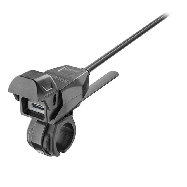 Kit d'alimentation tubulaire avec prise USB Type C, conçu pour recharger vos appareils en toute sécurité lors de vos trajets moto.