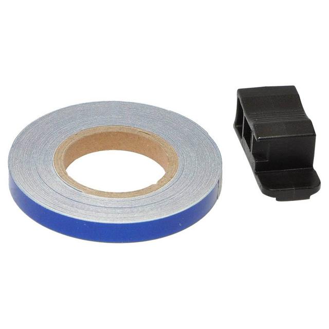 Filet de jantes bleu réfléchissant avec applicateur. Longueur 6 m pour couvrir 2 roues recto/verso.