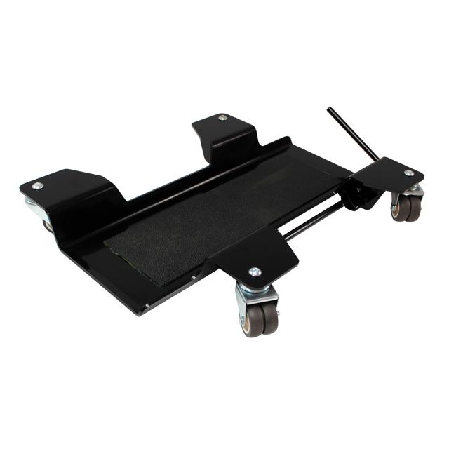 Range moto roulant. Convient à presque tous les modèles avec béquille centrale. Avec frein de manœuvre et revêtement en caoutchouc pour éviter les rayures. Pour le rangement sur un support solide et plat.