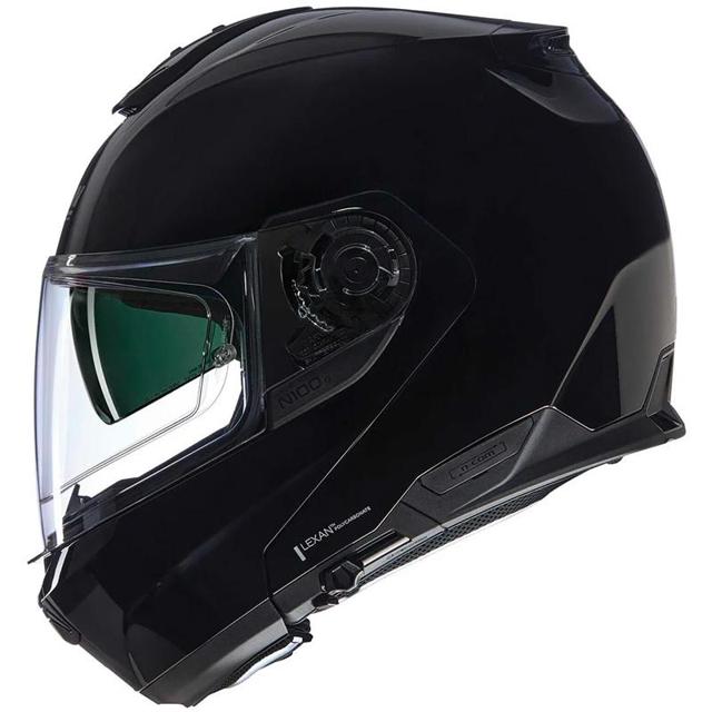 Casque moto modulable. Coque en polycarbonate Lexan™. Fermeture micrométrique Microlock2. Deux tailles de calottes, une ventilation efficace avec AirBooster Technology, et une bavette anti-remous. Mentonnière Dual Action facilite l'ouverture d'une main, avec mouvement flip-back sécurisé. Écran large avec Pinlock® et pare-soleil VPS pour une vision claire. Intérieur Clima Comfort Top et adapté aux lunettes. Prédisposé à recevoir les kits de communication Bluetooth Nolan disponibles en option et l'ESS III, le système signalant les freinages. Homologué ECE 22.06 avec double homologation jet/intégral (P/J).
