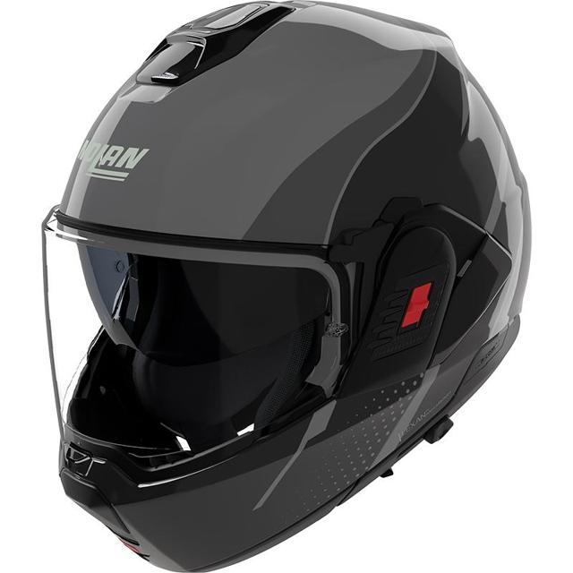 Casque modulable. Coque en polycarbonate Lexan™, deux tailles de calottes et coiffe en maille. Fermeture micrométrique Microlock2. Compatible avec l'intercom N-Com en option. Ventilation AirBooster Technology pour une circulation d'air optimale. Rembourrage Clima Comfort Top, mousses de joues amovibles, et eyewear adaptive pour les lunettes. Mentonnière Dual Action avec flip-back et pare-nuque ajustable. Écrans large et solaire VPS, avec système Pinlock® anti-buée. Prédisposé à recevoir les kits de communication Bluetooth Nolan disponibles en option et l'ESS III, le système signalant les freinages. Homologué P/J selon la norme ECE 2206.