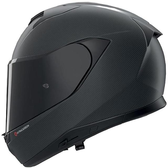 Casque intégral touring et route en carbone. Coque en ultra-carbone légère à un EPS multi-densités et au système d'urgence NERS pour une sécurité maximale sécurisée par une boucle double D. Son ergonomie repose sur 3 tailles de calottes et une personnalisation poussée via le Liner Adjustable Fitting (LAF), complétée par des mousses 3D Steadyfit en polyamide Sakura et le système Eyewear Adaptive pour les porteurs de lunettes. Côté vision, il dispose d'un écran extra-large à montage magnétique MVA, d'un Pinlock® antibuée, d'un pare-soleil VPS UV400 réglable et d'un second écran fumé offert. Enfin, sa ventilation optimisée par des entrées réglables et un extracteur arrière, associée à une prédisposition pour les intercoms N-Com, en fait un modèle premium complet incluant cache-nez et bavette anti-remous. Homologué ECE 22.06.