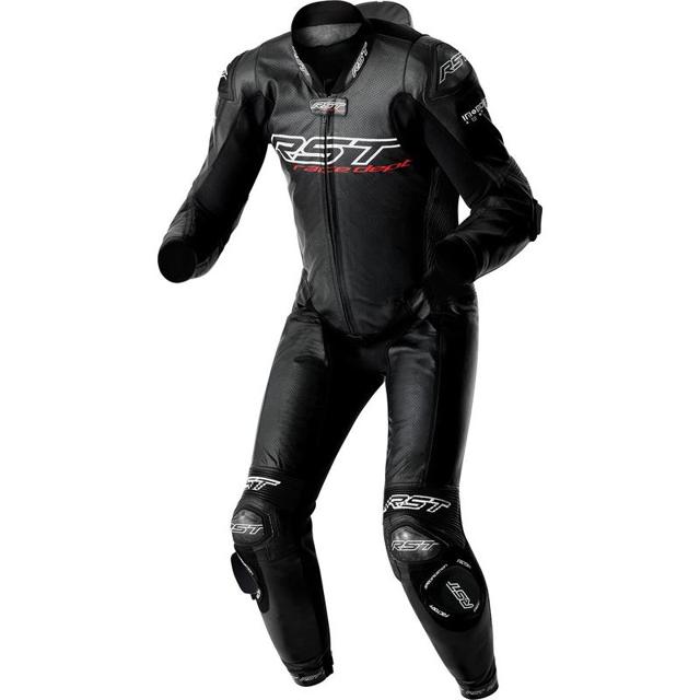 Combinaison moto RST V4.2. Conçue pour une utilisation intensive sur circuit, intègre un système d’airbag haute performance In&motion, protection active du pilote en cas de chute. Ensemble de la combinaison équipé de protections D3O de niveau 2 aux coudes, épaules, dos, hanches et genoux. Excellente absorption des chocs. Associe cuir de kangourou, reconnu pour sa légèreté et sa résistance, cuir de vachette premium, durabilité renforcée. Doubles couches de cuir, renforts en Kevlar® DuPont™ et coques en carbone aux épaules et aux genoux. Coupe racing ergonomique, extensibilité 4 directions et ventilation efficace. Homologué CE niveau AAA.
