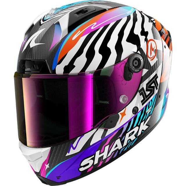 Casque moto haute performance. Design inspiré du MotoGP : vitesse, adrénaline, dépassements. Coque en Carbon on View et fibres d'aramide (COVA). Emergency Quick Release System permettant d'enlever les coussinets de joues rapidement en cas d'urgence. Fermeture de la jugulaire par boucle double D. Sa mentonnière en EPU double densité, 5 entrées d'air et 7 extracteurs, Écran VZ100 de classe optique 1. Robustesse, protection contre les chocs. Excellente isolation acoustique. Épaisseur variable de 4mm à 3mm sans distorsion. Traitement anti buée et anti-rayure. Ancrage 4 points système breveté. Préhension d’écran latérale + Pion de verrouillage. Pré équipé Tear Off. Dans la boîte : 1 écran Dark Smoke or Iridium. 2 masques antibuée (été/hiver). 5 filtres anti-pollution. Homologué 22.06.