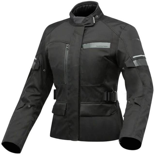 Veste moto étanche pour femme avec doublure amovible, confortable et sécurisée pour toutes les saisons.